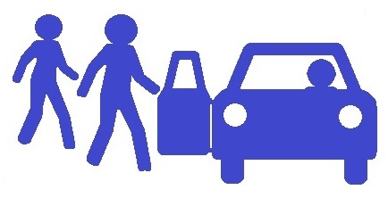 El icono de compartir viaje, muestra un conductor en su coche, con una puerta abierta para que suba un pasajero.